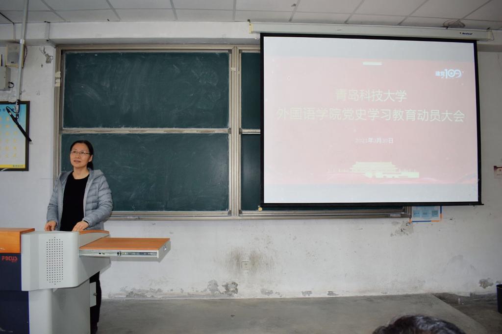 学院党委书记曲斌艳对扎实有效地开展学院的党史学习教育提出三点要求:第一要提高站位,端正党史学习教育的态度。从宏观层面,在全党开展党史学习教育,是党中央立足党的百年历史新起点、统筹中华民族伟大复兴在战略全局和世界百年未有之大变局、为动员全党全国满怀信心投身全面建设社会主义现代化国家而作出的重大决策;从微观层面,开展党史学习教育是党员提高党性、坚定信仰、强化担当的有效途径。第二,厘清思路,提高党史学习教育的效率。明确学习要求、学习内容和学习方法,提高学习效率,做到工作学习两不误两促进。第三,“干”字当头,彰显党史学习教育的效果。“学党史、悟思想、办实事、开新局”,学党史的落脚点在“干”,全体党员要聚焦主责主业、聚焦学院2021年重点工作任务,认认真真开展党史学习教育、真真切切提高思想认识、踏踏实实干事行动,实实在在开创学院发展新局。