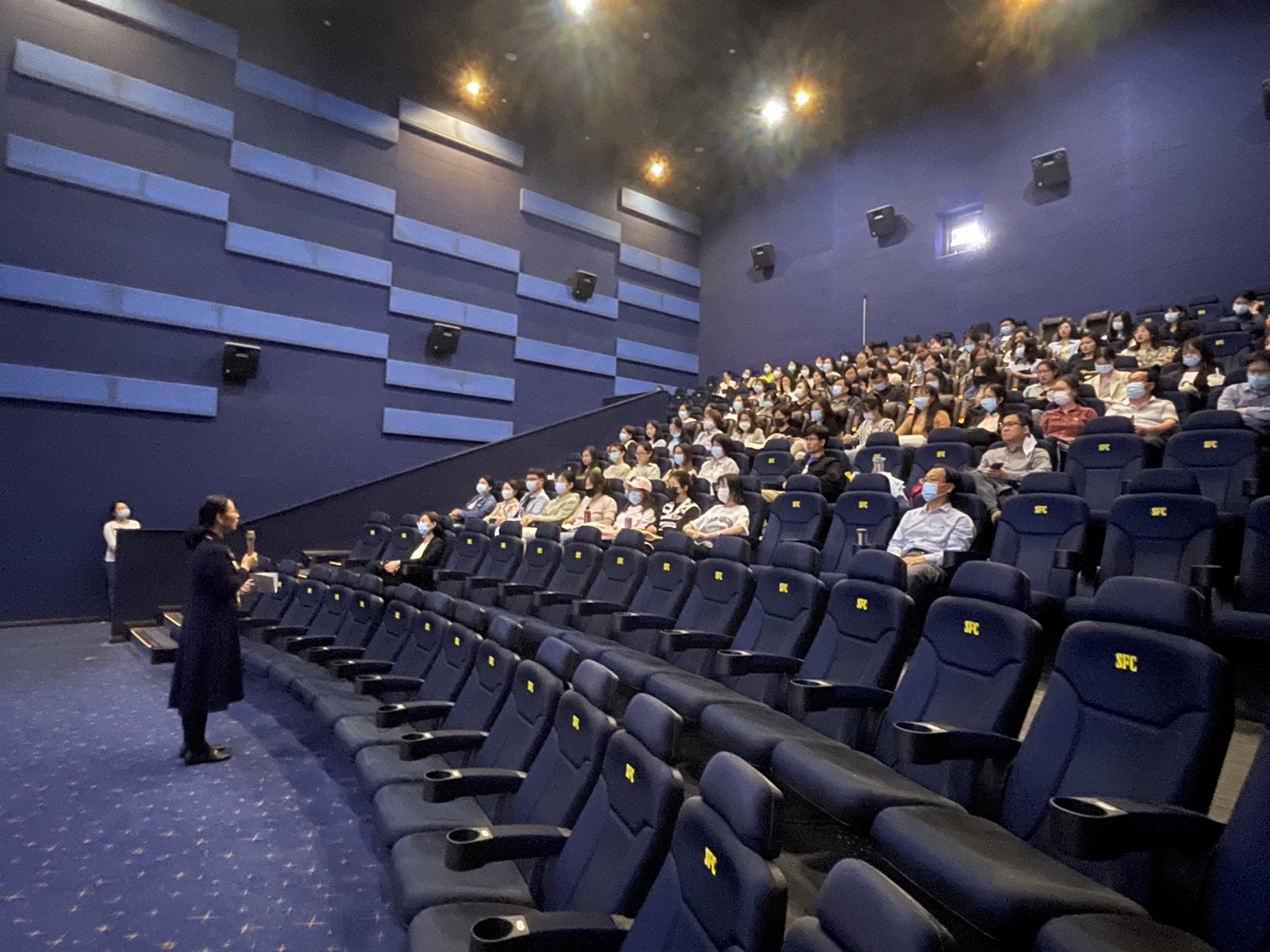 于金狮广场SFC上影影城开展党史学习教育专题学习班开班仪式暨观看红色电影《悬崖之上》主题活动,学院党委委员以及全体教工党员和学生党员共80余人参加活动,仪式由学院党委书记曲斌艳主持。