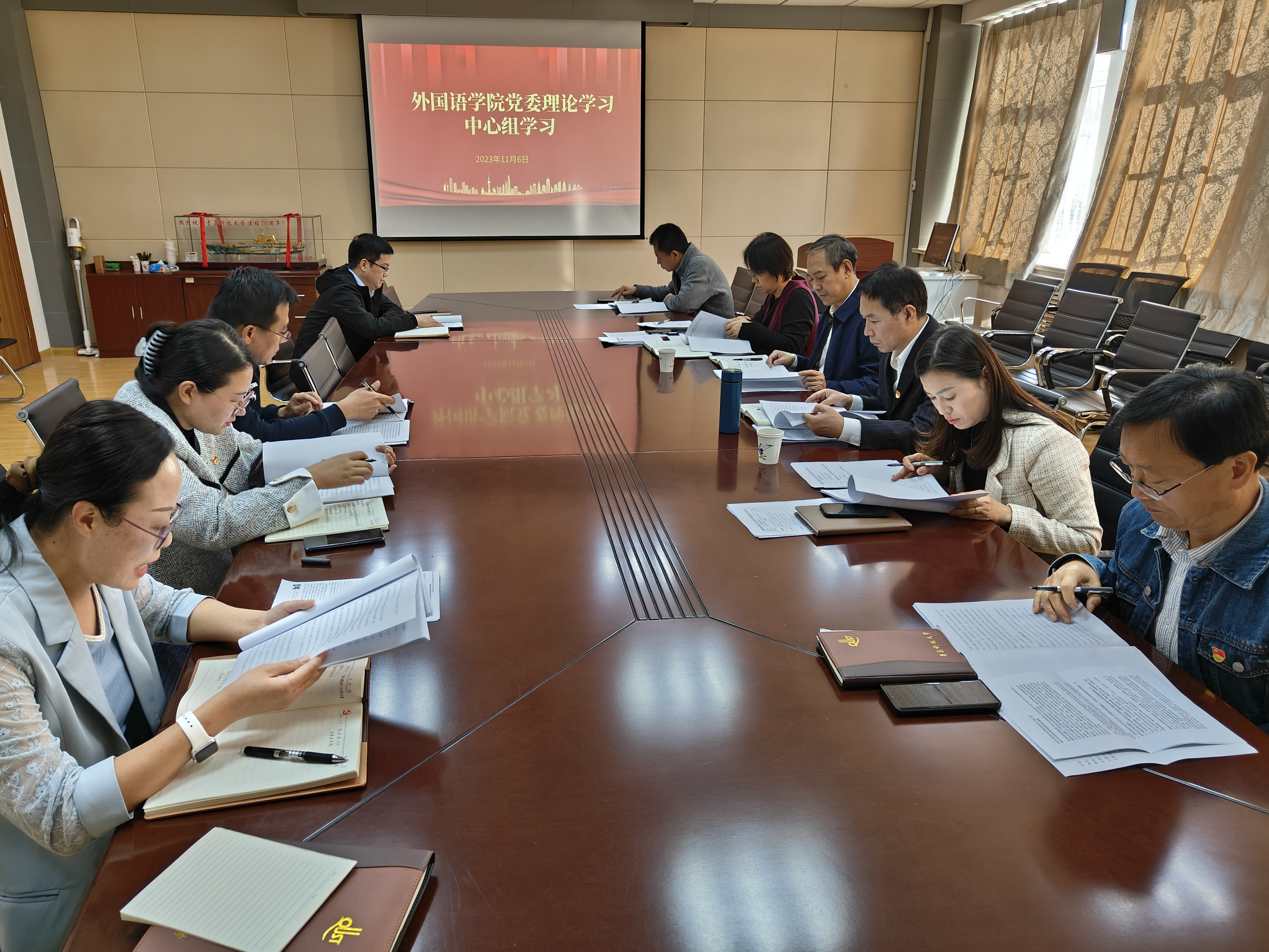 党委理论学习中心组在学院517会议室举行集体学习,校纪委书记刘明永巡听旁听,学院党委委员、团委书记参加此次学习。集体学习由学院党委书记曲斌艳主持。