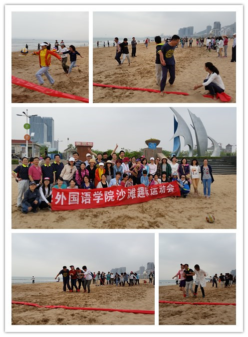 在石老人海水浴场举办第四届沙滩趣味运动会。学院党总支书记许桂锋、院长姜德杰及学院教师参加了本次运动会。