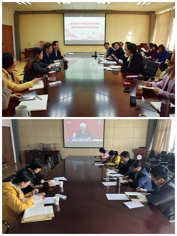 教职工广泛深入学,实现学习全覆盖 11月13日上午,学院通过集体收看和个人收看相结合的方式,组织学院师生观看学习贯彻党的十九届五中全会精神中央宣讲团报告会视频。11月24日下午,学院召开全体教职工大会集体学习党的十九届五中全会精神,学院党委书记曲斌艳向全院教职工传达了山东省政协党组成员、副主席韩金峰来校宣讲党的十九届五中全会精神的报告内容。各党支部也组织广大师生通过学习强国平台深入学习全会精神。多途径、多形式的学习方式实现教职工全会精神学习的全覆盖。