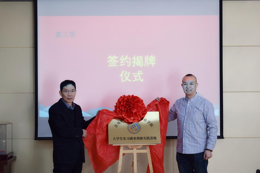 院长尹洪山、副院长康宁,青岛语都教育科技有限公司董事长刘焕强等出席仪式。尹洪山、刘焕强分别代表学院和企业签署了共建协议,共同为实习基地揭牌。仪式由bangumi