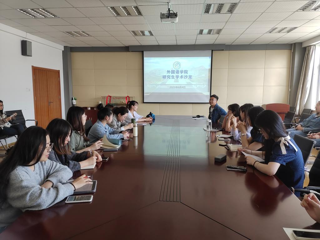 于517会议室举行论文写作经验交流座谈会,会议邀请2018级外国语言学及应用语言学王树胜同学进行经验介绍,分享学术论文写作、投稿等方面的注意事项。