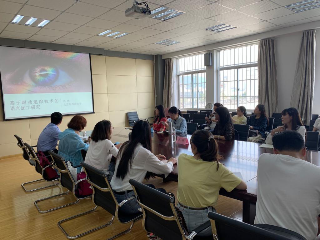 进行学术交流,在外语楼517会议室做了题为《基于眼动技术的语言加工研究》的学术讲座。讲座由bangumi