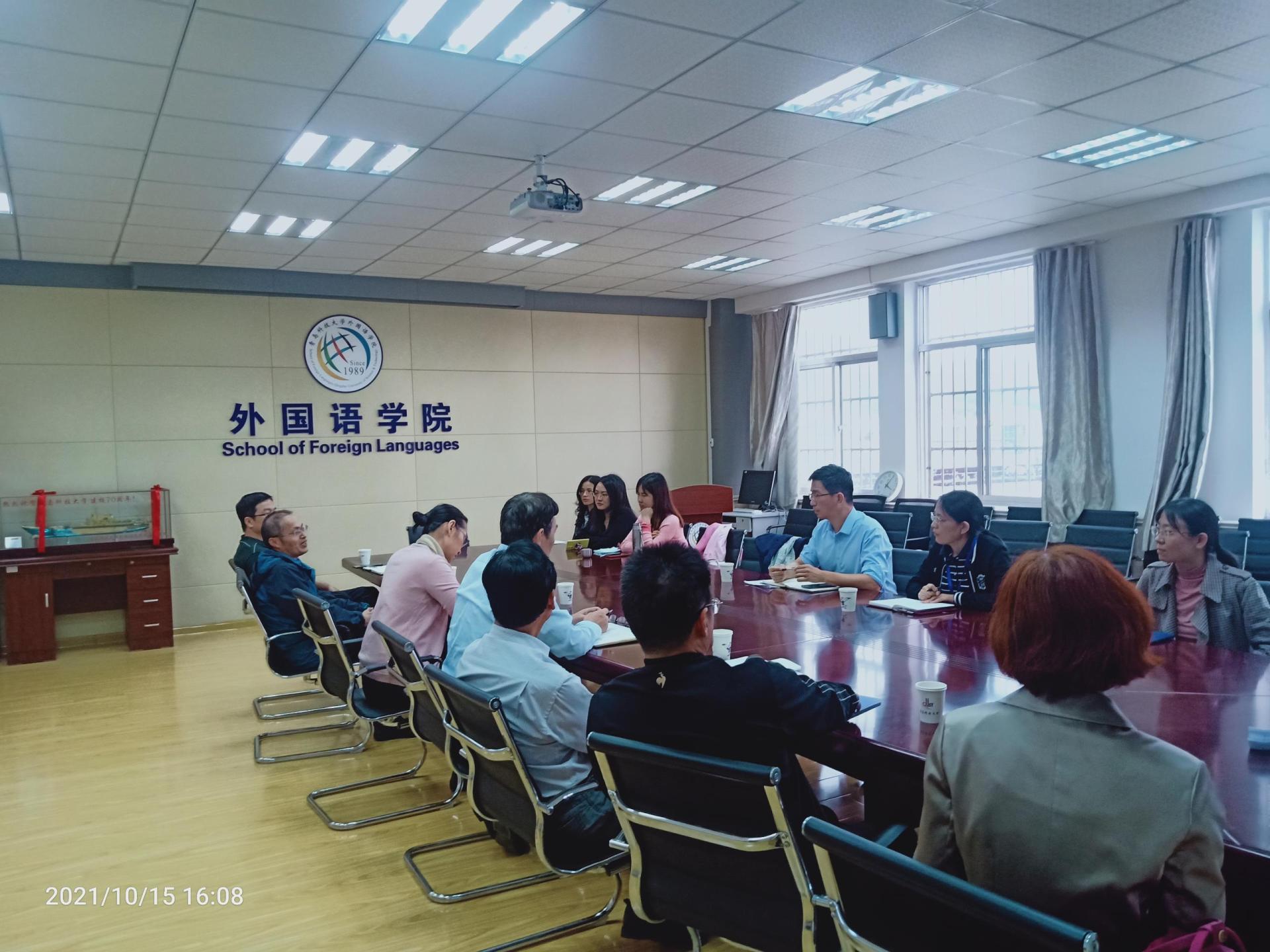 新聘期科研工作开局好,尤其是在国家社会科学基金中华学术外译项目上实现了学校重点项目的突破,希望学院在党建引领下,在已有的工作成绩基础上,再接再厉,力争科研水平再上一个新台阶。调研中,杨友才处长对近期人文社科处在国家社科基金项目申报、科研成果获奖、学术著作出版、高水平论文发表、科研团队建设、科研合作与交流等方面的相关政策和激励措施进行了详细的说明。他表示人文社科处要进一步当好“店小二”,在学校以学科建设为引领的高质量发展道路上为学院、为一线教师的科研工作做好服务,进一步“扶优扶强”,激发科研潜能,营造良好氛围,培育科研团队,锻造有影响力的学术带头人。他特别鼓励与会的科研骨干和青年博士要解放思想,眼光长远,敢想敢干,敢想国家社科重大项目、敢冲击国家社科基金项目、青年博士要积极尝试国家社科青年基金项目,要发扬“长津湖”战斗精神,敢于挑战困难,敢打敢拼,这样才有可能在项目申报和科研方面有新的突破。调研会期间,杨友才处长、戴尊红副处长和与会的学术骨干、青年博士进行充分的交流,对一线教师科研方面关心的问题进行了解释和讨论。