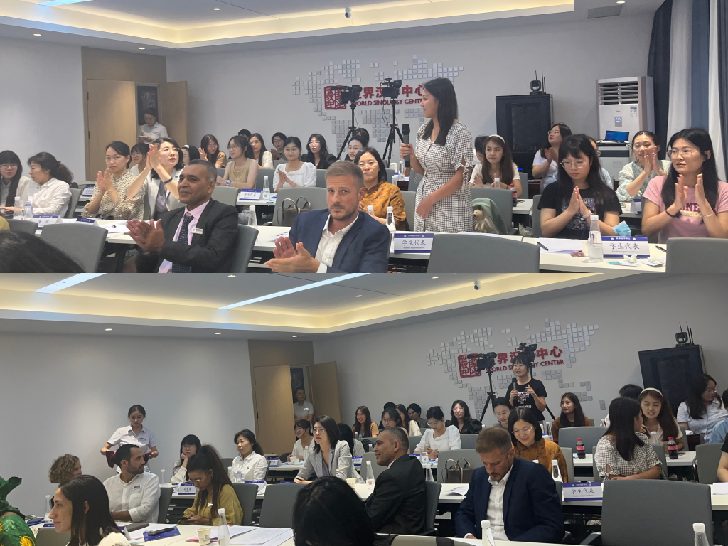 的20多位研究生、本科生进行现场交流互动,与会各方交换了各自见解,增进了彼此之间的友谊。学院研究生张文文说,通过参加此次论坛,自己对于“一带一路”文化交流也有了更加清晰的了解。学生代表们都表达了致力于促进人类文明进步、推动构建人类命运共同体的真诚愿望,希望为汉学研究贡献更多青春力量。