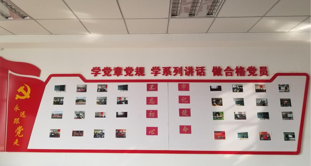 于外语楼502党员活动室举办“不忘初心、牢记使命”主题教育图片展。