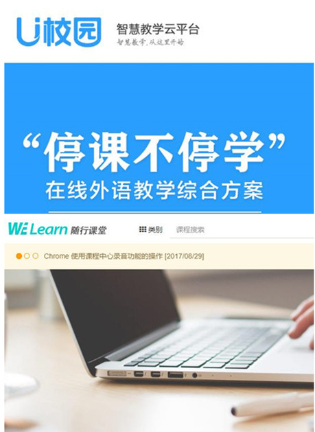 大学外语教学部根据我校的实际情况,经反复论证试课,拟定以“小型资源平台(U校园和WE Learn随行课堂)+ 线上”的模式开展大学英语在线授课,其中读写课采取:线上直播(推荐QQ群屏幕共享)+ U校园的模式;视听说课采取:线上直播(推荐QQ群屏幕共享)+ WE learn随行课堂的模式。