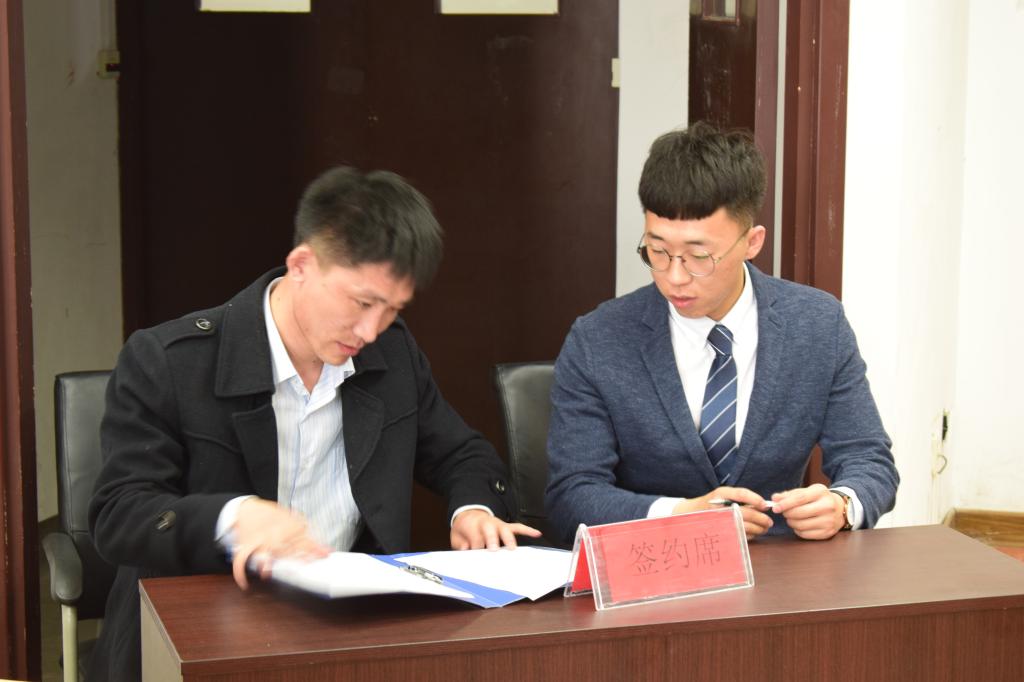 党总支副书记宋飞宣读了《关于开展我过于学院“宿舍文化建设月”活动的通知》。分团委书记贾明明分别于院学生会主席王晓琦、自律委主席何忠超签订了《学生自我管理协议》《文明宿舍公约》。