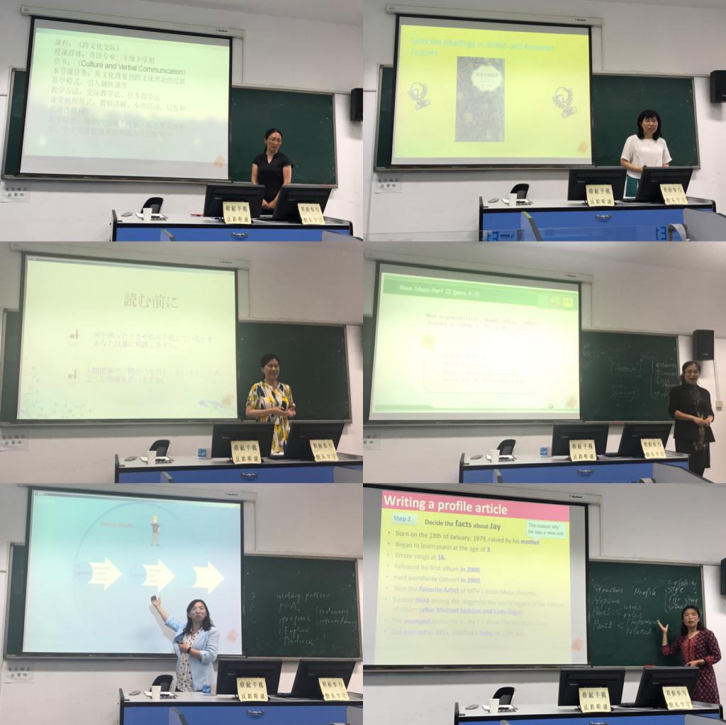 教学效果优秀奖选拔赛暨教学能手大赛在外语楼418教室举行。副院长任素贞,康宁,院长助理刘靖、各系部主任及学院教学督导员担任评委工作。首先参赛教师陈超、刘昱君、杨晓梅、王丽、王宁、孟靖分别展示了15分钟的课堂教学环节。每位教师的教学设计都充满新意,均采用当下主流教学方法;课件制作精美,不仅有图片文字展示,还辅助以视频,动画等多媒体手段;授课语言优美,教态大方;授课过程互动性强,时刻吸引听众的注意力;整个授课过程流畅自然,从中不难看出每一位参赛教师课下的精心准备,真正体现了台上一分钟,台下十年功。