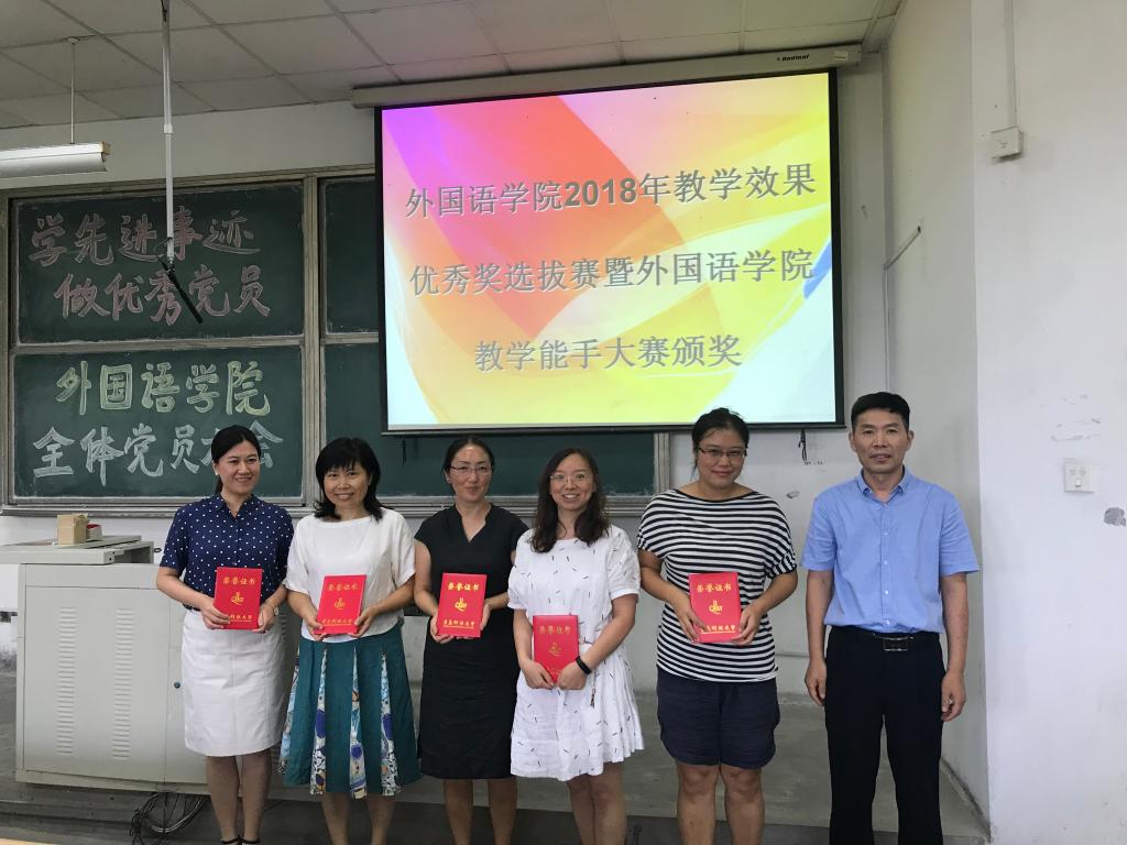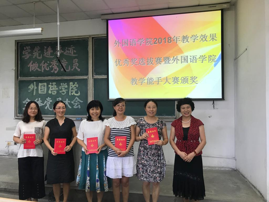 教师积极参加各类教学大赛并取得骄人成绩。刘艳艳老师荣获2018年外研社“教学之星”大赛天津分赛区季军;杨晓梅老师荣获2018年外研社“教学之星”大赛复赛一等奖;段晓茜老师荣获第九届“外教社杯”全国高校外语教学大赛(英语类专业组)山东赛区三等奖;孙福珊老师荣获2018年bangumi