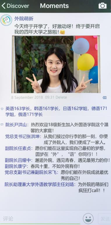 领跑小语滴,助“新”起航。开展“小语滴”领跑计划,通过17级各班级与新生班级一对一结对子的形式,由老生班级将所对应班级的新生迎进学校,并给予适应性指导,帮助指导新生尽快融入大学生活。