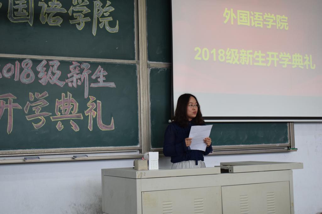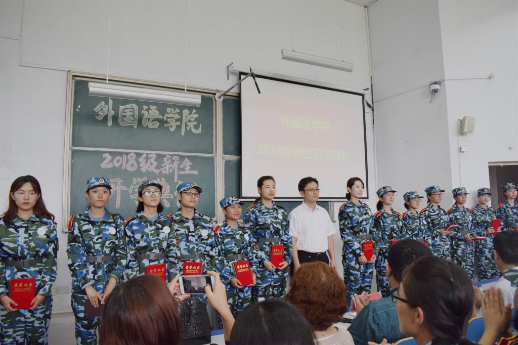 外国语关于表彰军训先进的决定》。英语系教师段小茜作为代表发言,对2018级新同学的到来表示热烈欢迎,并对同学们的学习和生活提出了期望和要求。