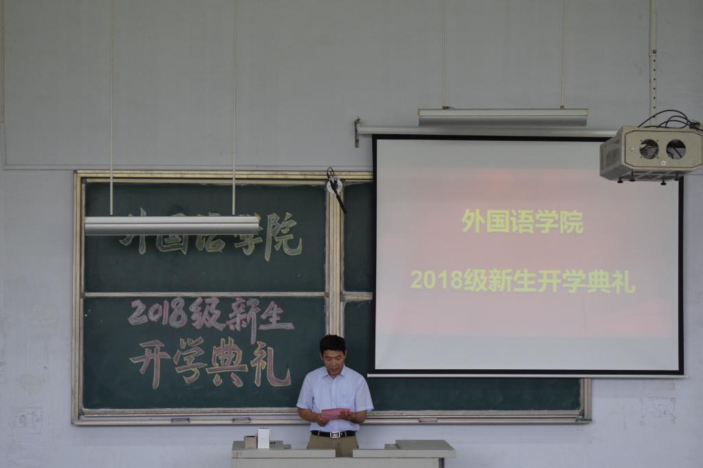 最后,院长尹洪山、党总支书记张洪坤分别为获得外院之星称号和在军训中表现突出的学生颁奖。老生代表刘晓雨、新生代表鲍国美分别在开学典礼上发言。