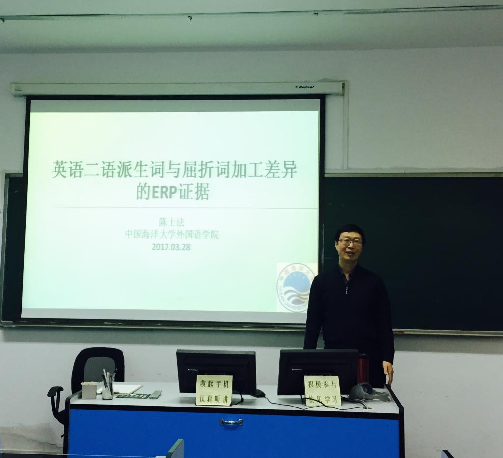 作报告。报告主题为“英语二语派生词与屈折词加工差异的ERP证据”。报告会由副院长吕耀中主持,院长尹洪山及学院部分师生参加了此次报告会。