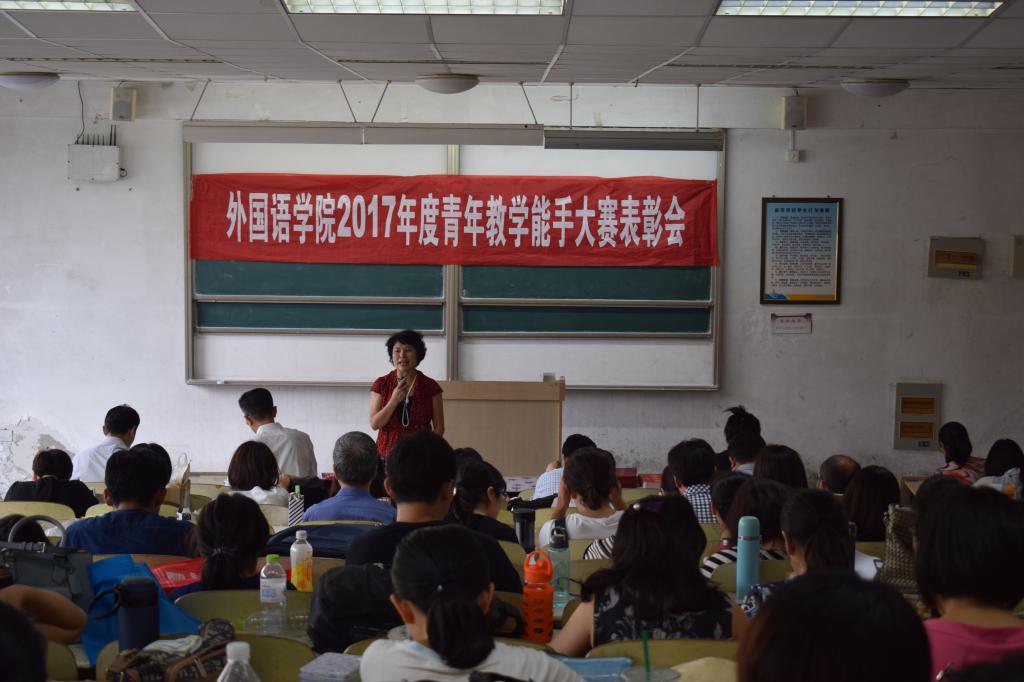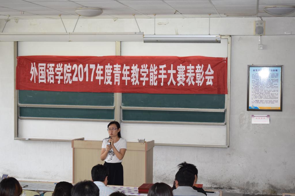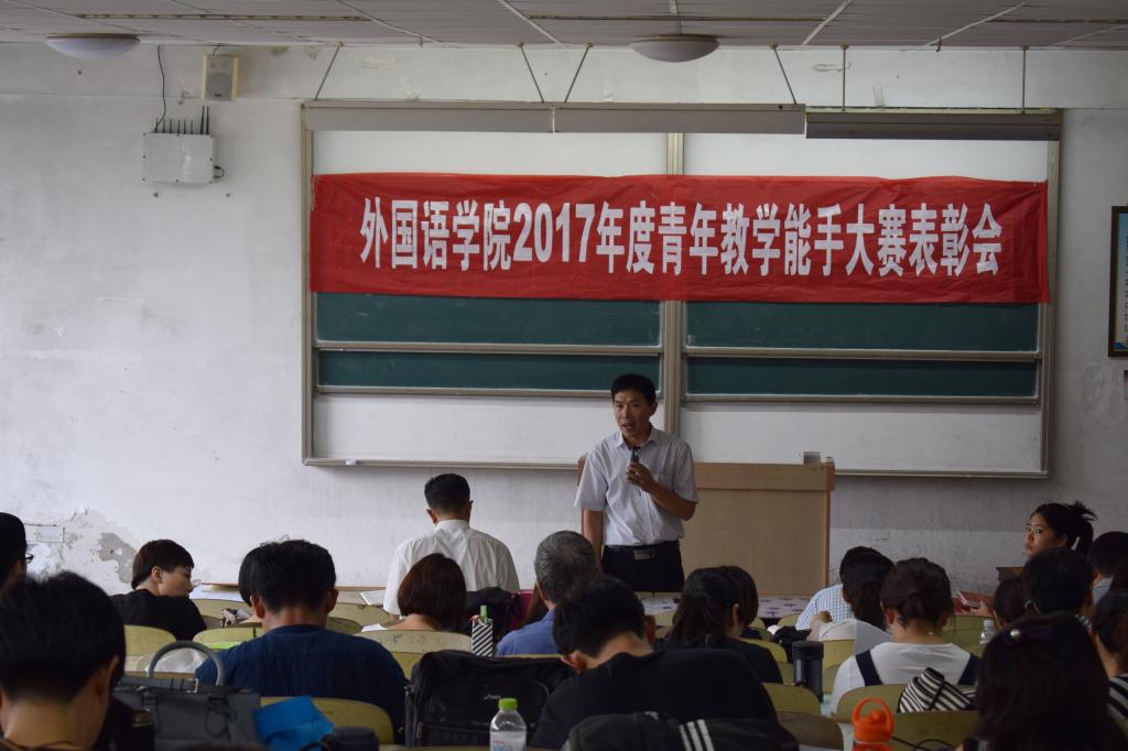 在弘毅楼B102组织召开2017年青年教师教学能手大赛表彰大会,学院党政领导尹洪山、姜德杰、任素贞、吕耀中、宋飞以及全体教职工参加了本次大会。