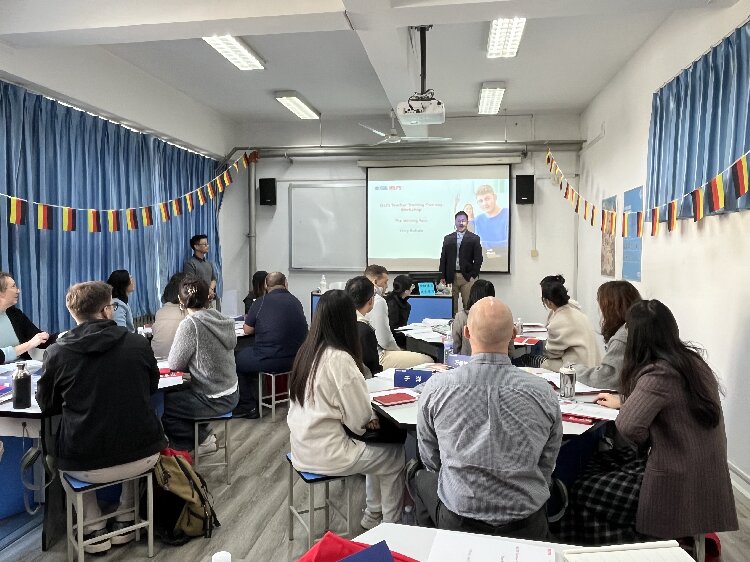 在崂山校区承办了雅思考试主办方英国文化教育协会为期一天的雅思师资培训。这是该协会在全国多地举办的系列培训之一。协会资深雅思培训师汤儒涵先生和王婷女生担任培训教师,校内外英语教师共28人参加了此次培训。