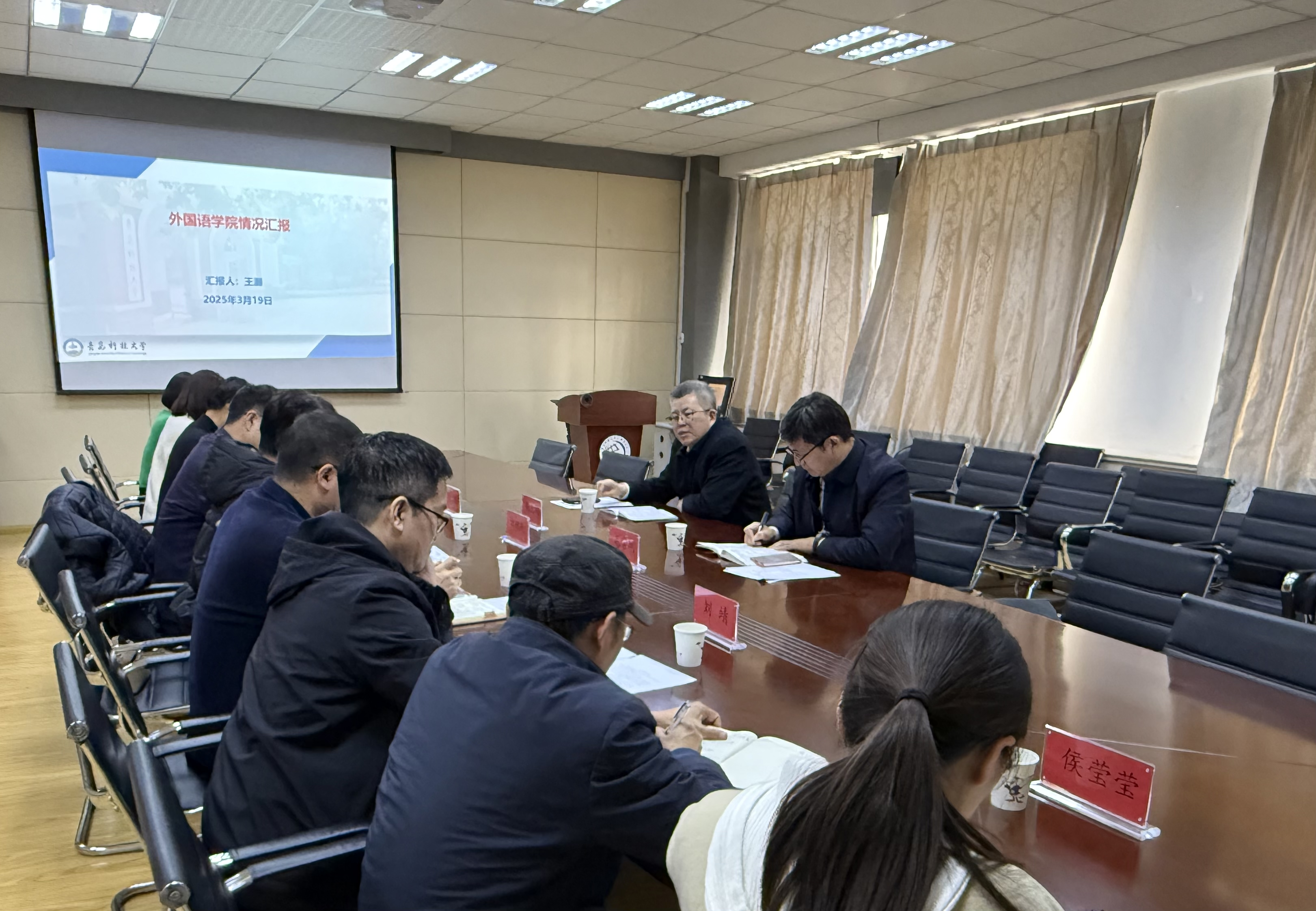 院长王灏汇报了学院发展现状、遇到的困难和挑战以及学院今后发展思路,与会人员从学科专业发展、师资队伍建设、人才培养等方面谈了认识和体会。