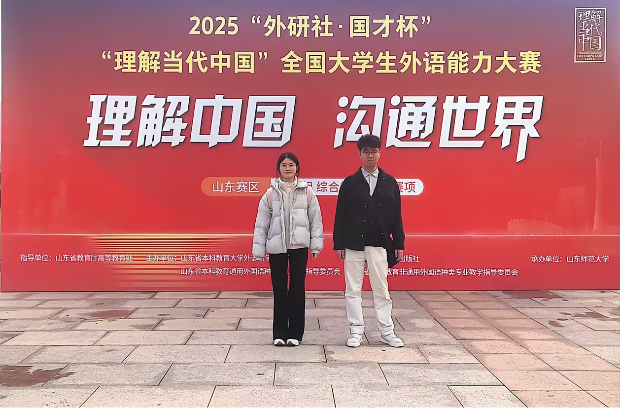 24级翻译硕士徐佳昊同学凭借其卓越的双语转换能力与深厚的跨文化沟通素养,从全国顶尖选手中脱颖而出,冲进国赛50强,勇夺国赛银奖。另外,综合能力赛项英语234班武采辰同学荣获国赛铜奖。