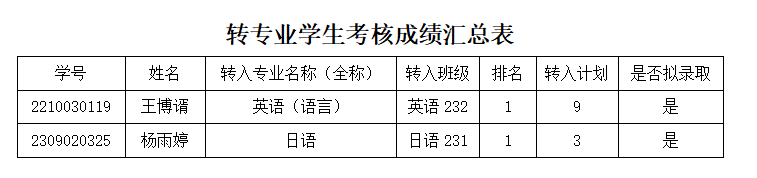 根据《bangumi 学生转专业管理办法》文件要求,经学生自愿报名申请、学院考核,拟接收以下学生转入bangumi ,现予以公示,公示期3天。如有异议,请于公示期内联系bangumi 教学办,联系电话:88956749。