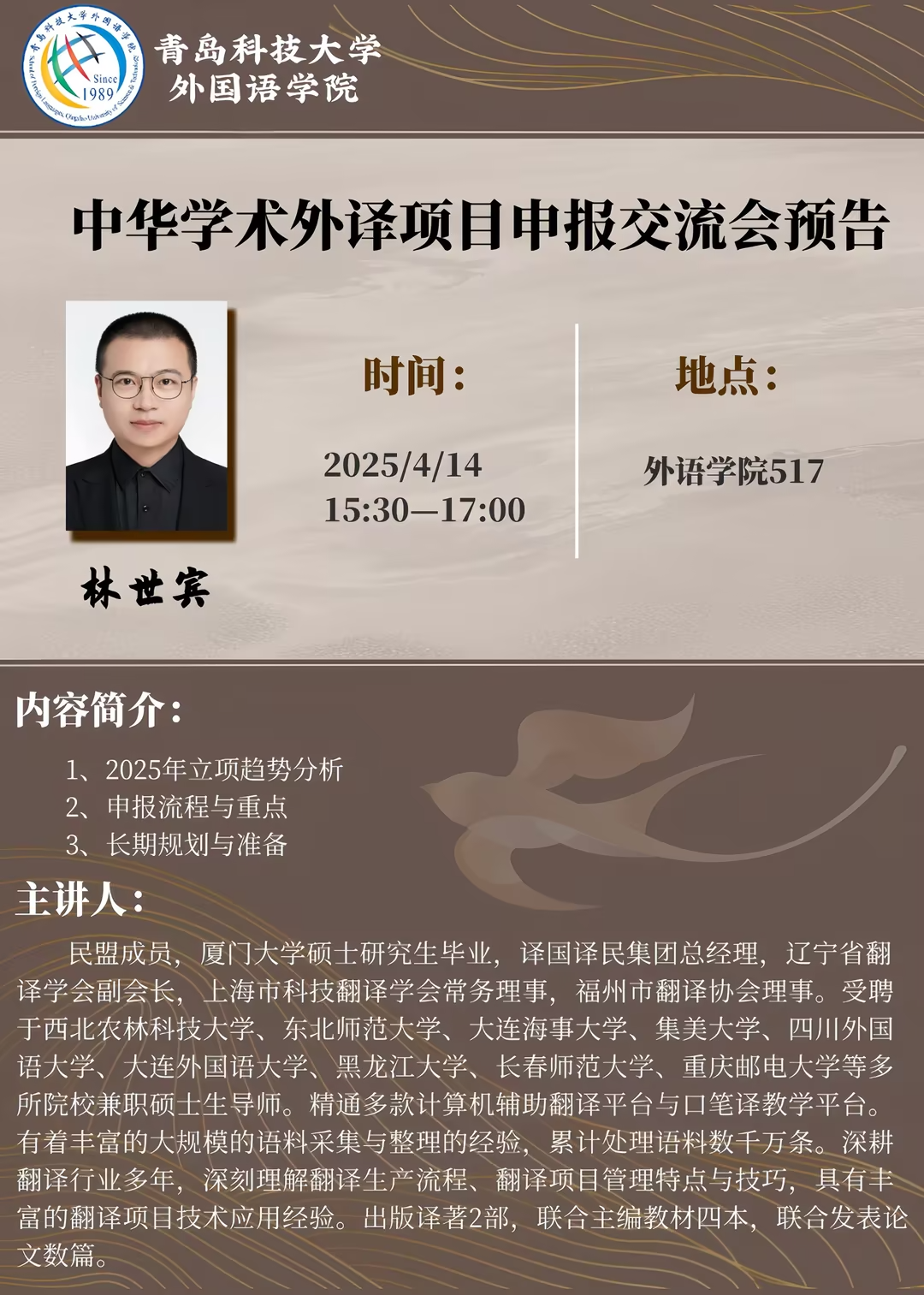 中华学术外译项目申报交流会预告