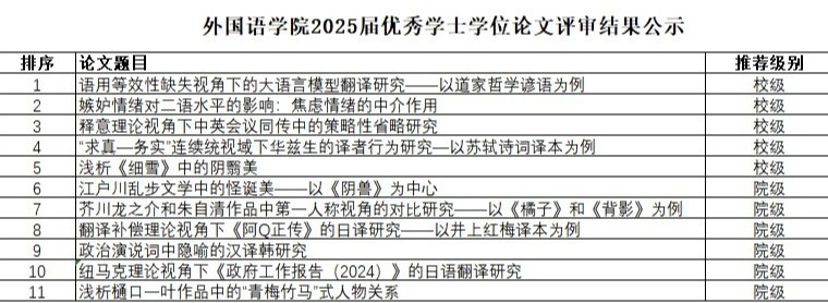 上一条:bangumi 2025届优秀学士学位论文评审结果公示(高密校区英语专业)