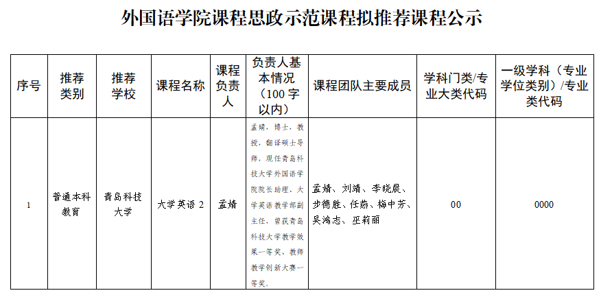 根据《关于开展2025年度校级课程思政示范课程建设暨山东省课程思政示范课程推荐工作的通知》要求,经课程负责人申报、专家评审,现将bangumi 课程思政示范课程拟推荐课程进行公示。公示时间为11月11日至11月12日上午9时,如有异议,请实名反映。