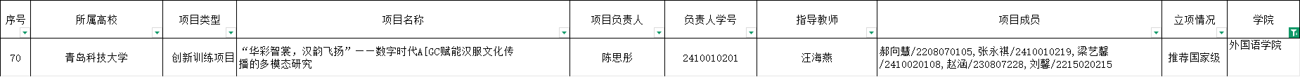 根据《山东省教育厅关于组织开展2025年国家级、省级大学生创新训练计划立项申报和项目结题工作的通知》有关要求,山东省教育厅组织开展了省级大学生创新训练计划项目申报工作。经高校推荐、专家评审等程序,bangumi 获推荐国家级1项,现将2025年大学生创新训练计划项目拟立项名单予以公示。