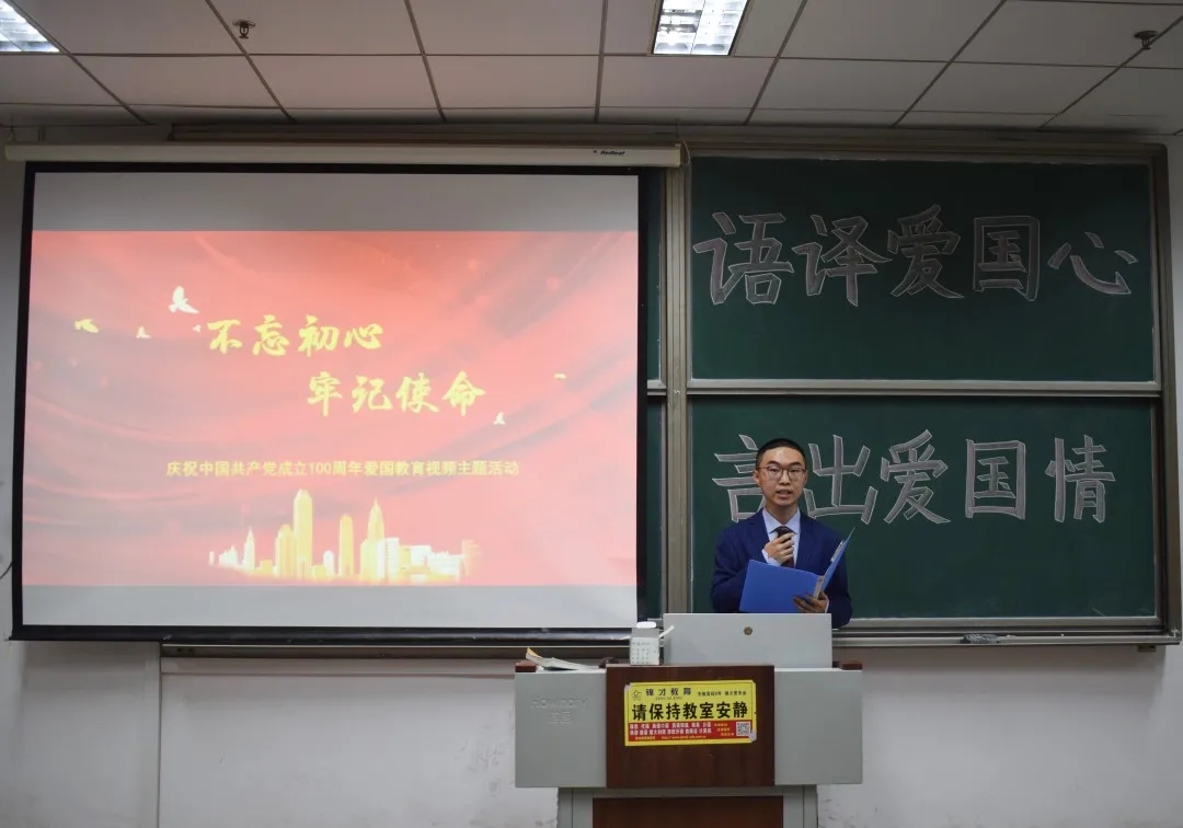 于4月16日在明德楼204教室开展"语译爱国心,言出爱国情”爱国教育视频主题活动,组织青年学生们共同观看爱国教育视频。