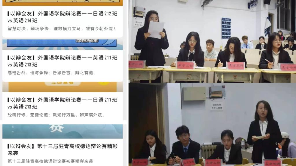 第24届辩论赛正式打响,辩论赛吸引了2021级新生们的广泛参与,整个辩论赛历经初赛和复赛,时间长达一个多月。10月底,第十三届驻青高校德语辩论赛也在bangumi