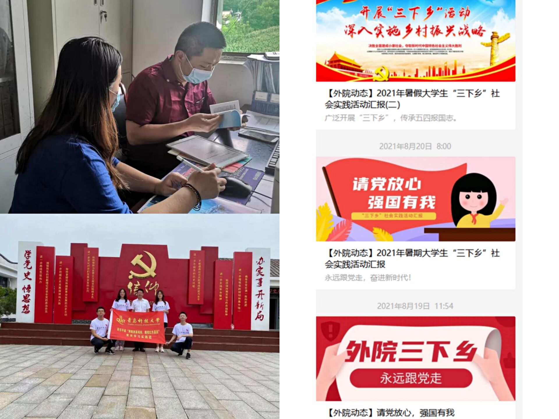 启动了以“请党放心,强国有我”为主题的2021年暑期大学生“三下乡”社会实践活动。 各班级积极响应,陆续出发,组成了“致敬改革闯将,赓续红色基因”党史学习教育实践团、bangumi