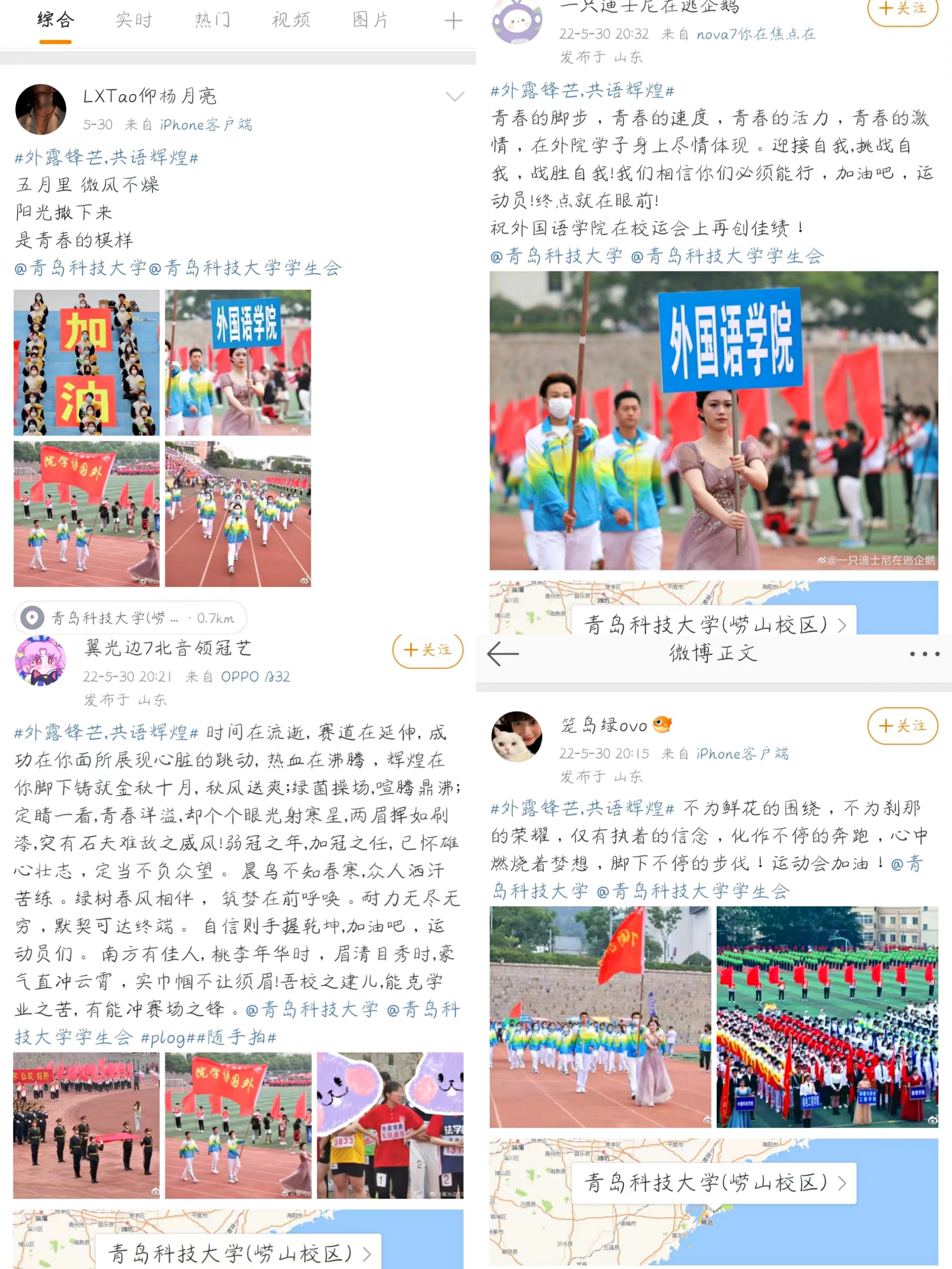 学生会于5月29日组织举办了运动会期间微博打卡活动,广大外院学生积极参与。