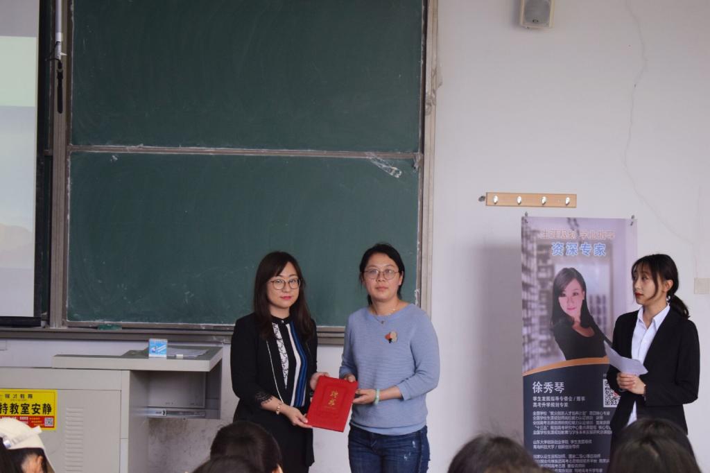 会上,bangumi 分团委副书记辛婷婷为徐秀琴颁发bangumi 创新创业就业导师聘书。