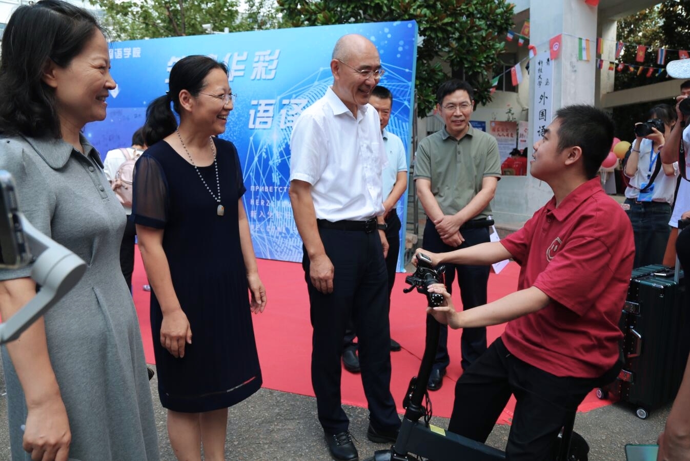 德语专业新生辛珍珩同学有进行性肌营业不良肌营养不良病史,四肢肌力差,学院得知新生情况,积极帮助新生进行课程调整,便利出行、关照生活,尽最大努力满足学生诉求。在迎新当天,校领导以及院领导也来到现场,对辛珍珩同学进行关心与问候,并鼓励辛珍珩同学努力学好自身专业,成长为德语优秀人才。除此之外,校领导和院领导也来到迎新现场了解现场新生报到情况,指导迎新工作的开展,亲切地询问学院新生报到的进展,并且对参加迎新活动的工作人员和志愿者们表示慰问。学校对迎新的高度重视以及学院领导的关怀让参与迎新的同学们热情倍增,也让前来报到的新生同学倍感亲切温暖。