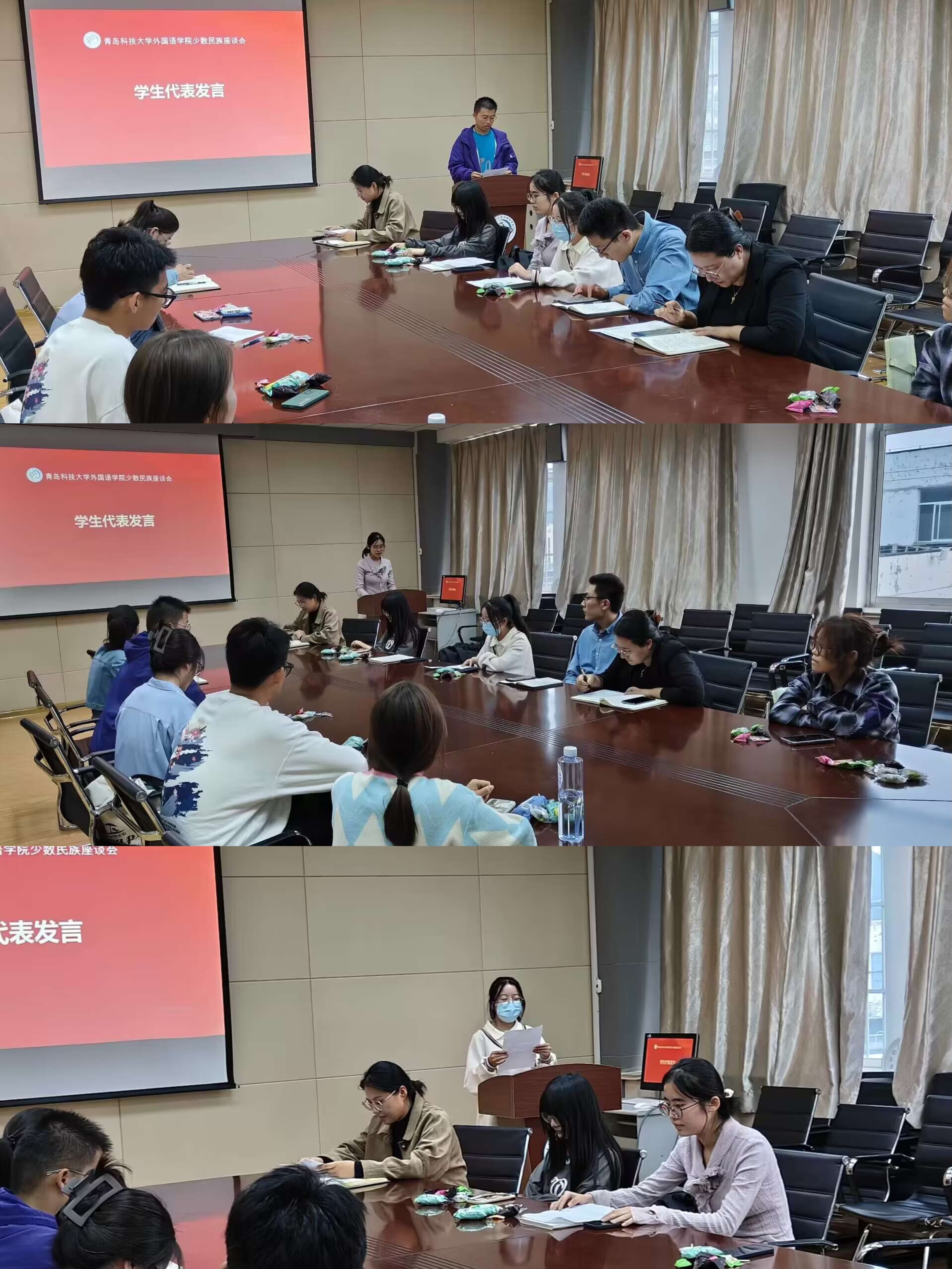 团委书记兼学工办主任刘妍君,辅导员张湘钧、马耀青、马昆老师以及各年级少数民族学生参加本次座谈会。