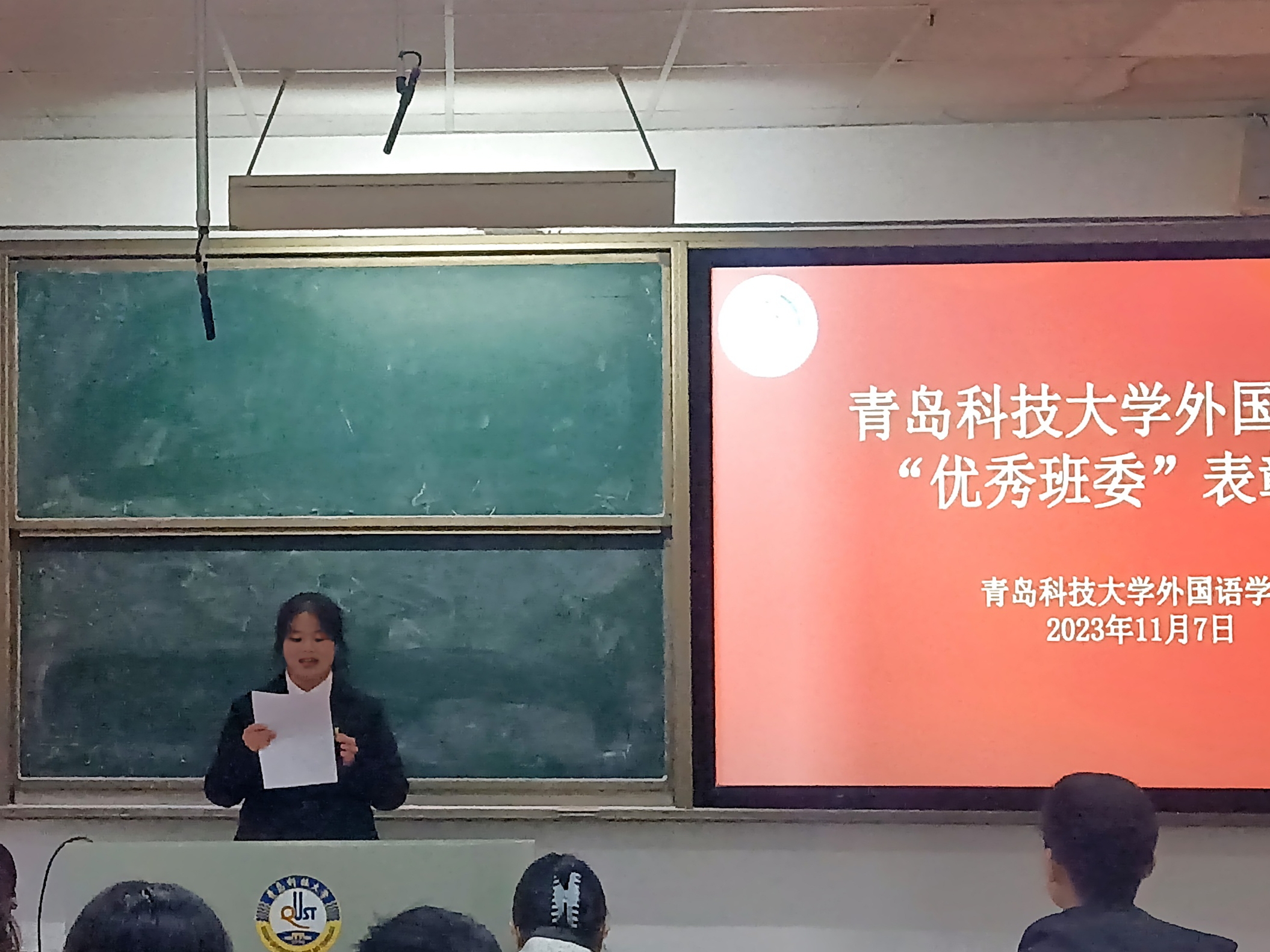 班委表彰大会是一项激励广大同学积极向上,努力奋进的重要会议。会议的开始,首先由刘妍君老师宣读优秀学生干部名单,并分别由刘妍君老师、张湘钧老师、马耀青老师和马昆老师为2022-2023学年优秀学生干部颁发证书。
