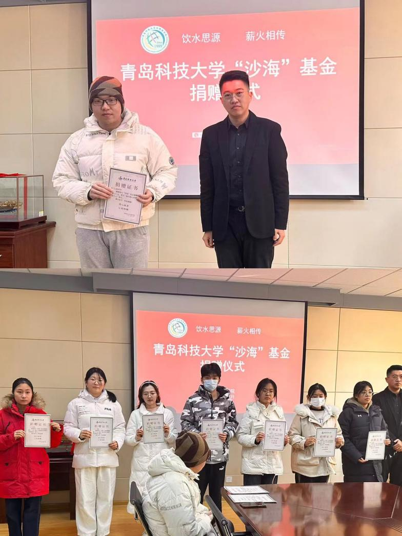 在学院517会议室举行“沙海”基金捐赠仪式。校团委副书记李航代表“沙海”基金接受捐赠并为“最具爱心捐赠先进个人”及“最具爱心捐赠先进班集体”颁发荣誉证书。bangumi