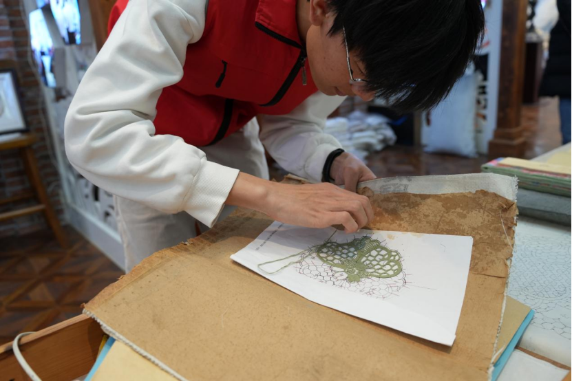 的学生们认真学习并尝试进行简单的花边制作,体会非遗文化的力量,肩负传播非遗文化的使命,为保护和发展中国传统文化贡献自己的力量。