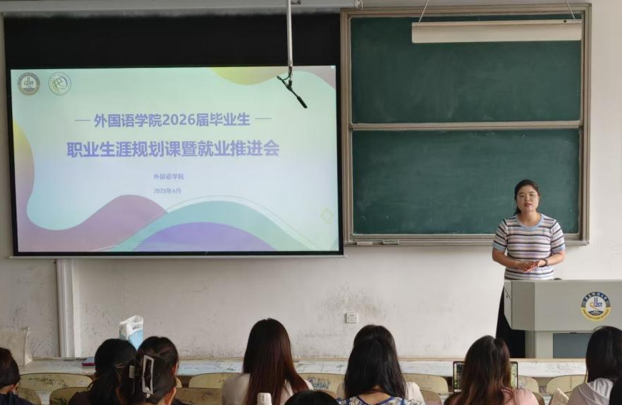 于6月21日召开2026届毕业生职业生涯规划课暨就业推进会,学院党委副书记兼副院长马寒、辅导员马耀青、企业代表及2026届毕业生参加会议。