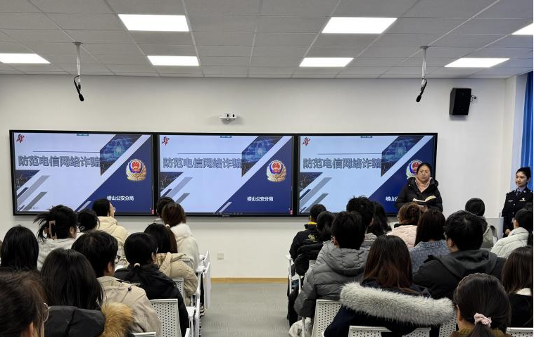 开展“防范电信网络诈骗”专题活动。本次活动特邀崂山公安分局金家岭派出所民警现场授课,以“案例剖析+知识普及+实操指导”的形式,系统解读电信网络诈骗的新套路,为同学们带来了一堂兼具专业性与实用性的安全知识盛宴。